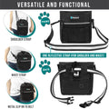 The perfect on-the-go pouch for you and your pet, this treat training bag has everything to meet your every day pet training and needs. Featuring large capacity with an expandable section to store all your pet's needs from treats, toys, leashes and more! A built-in poop bag dispenser so you're always prepared, 3 versatile ways to wear it, around your waist, sling it over your shoulder, or clip it to your belt or pants. Made from tough polyester for all the shenanigans.