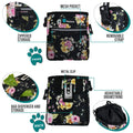 - Built in poop bag dispenser pocket, outside zipper pouch, mesh pocket, adjustable drawstring