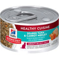 Hill's Science Diet Adult Healthy Cuisine Medley is a delectable cat food that offers rich, high-quality protein and clinically proven antioxidants. Your adult cat will adore the mouthwatering flavors of real chicken or tuna and rice in a savory sauce. Made with natural ingredients, this easy-to-digest cat food helps your kitty maintain lean muscle while supporting a strong immune system.